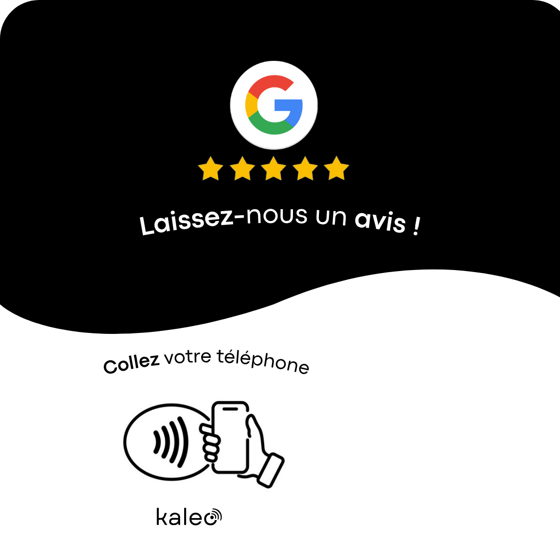 Vos clients collent leur téléphone sur la plaque Kaleo. Ils laissent un avis en 20 secondes. L'IA répond à votre place — fidèle à votre ton.